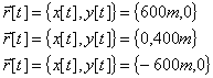 | A motorized dune buggy is moving along an elliptical track. A picture of the track with a choice of coordinate system is shown in the figure at the top of the next page. Each tic mark along the x and y axes represents a distance of 100 meters. (a) The driver drives around the track three times keeping her speedometer reading at a constant 35 miles per hour. Redraw the ellipse and its coordinate system. During her second circuit of the ellipse, draw onto your picture vectors indicating her position (use a single arrow ®), her velocity (use a double arrow Þ) and her acceleration (use a fat arrow è) when she is at the positions |