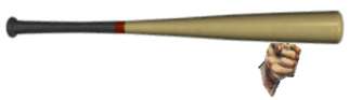 | (b) After finishing his workout with the weights, he balances a baseball bat on his finger as shown. His friend comments, “That must be where the center of mass is.” Is the friend right? How do you know? |  |
