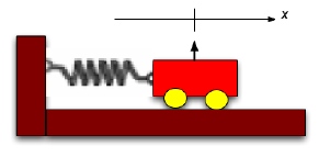 | Consider a simple harmonic oscillator (e.g., an idealized cart connected to a massless spring as shown in the figure at the right). In this problem, you will solve the equation of motion numerically as weel as analytically and explore the accuracy of your results. Assume the cart has a mass m and the spring has a spring constant k. For this problem, do not convert to dimensionless quantities. | ![]() |
