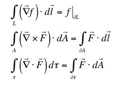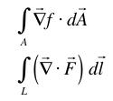.When we do this in vector form, the results are more complicated. If we have a scalar field, f, and a vector field, F, then we typically consider three theorems in three dimensions where an integral cancels a vector derivative: