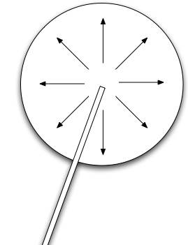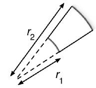 as an integral equation by integrating both sides and applying a vector fundamental theorem of calculus to the side with the gradient operator to get rid of it. (b) Assume that the velocity is constant. If we are ignoring gravity, this is reasonable. What would slow the bits of fluid down? If they are all emitted with the same speed, they should keep the same speed. So we assume v(r) = v0 independent of r. Show what this implies for the density as a function of radius by applying your result from part (a) to the volume consisting of a small angular wedge stretching from a distance r1 to a distance r2 as shown in the figure at the right below.