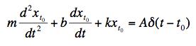 (b) Assuming that the cart is initially at x = 0 and is at rest, use the Fourier transform to solve for xt0(t),the position of the cart as a function of time when it is struck at a time t0.
