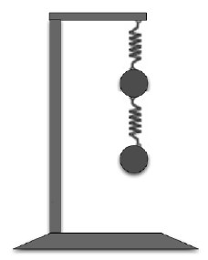 In class we considered the construction of the equations for the motion of two masses hanging on springs as shown in the figure on the right. In this problem, you will solve for the motions. Assume both springs are identical and have the same spring constant, k and the same rest length, L0and that the two masses have the same mass, m.