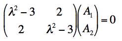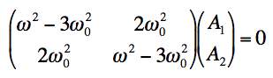 We know we can only get a non-0 solution if the determinant of the matrix vanishes. So we must require: