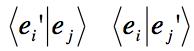 The result for the transposes of these is the same since <e'i|ej> = <ej|e'i>*. Since they are all real the transposes of the dot products are the same.