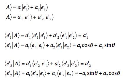 (b) Use the dot products you have constructed to express the coordinates of the vector |A> in the new basis, a1', a2', in terms of the old coordinates, a1, a2.