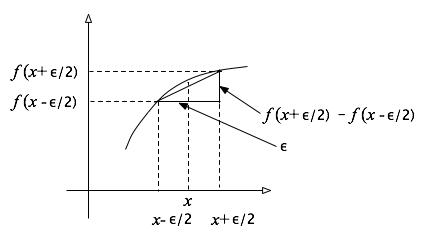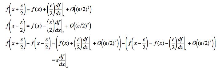 The derivative is defined as the limit of the right hand side above as ε approaches 0. Demonstrate that this is correct to O(ε2) using the Taylor series and show what it means graphically in terms of the slope of the tangent to the curve.