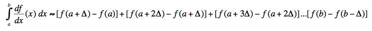 and using the approximation for the derivative with ε = Δ. Demonstrate the result (the fundamental theorem of calculus)