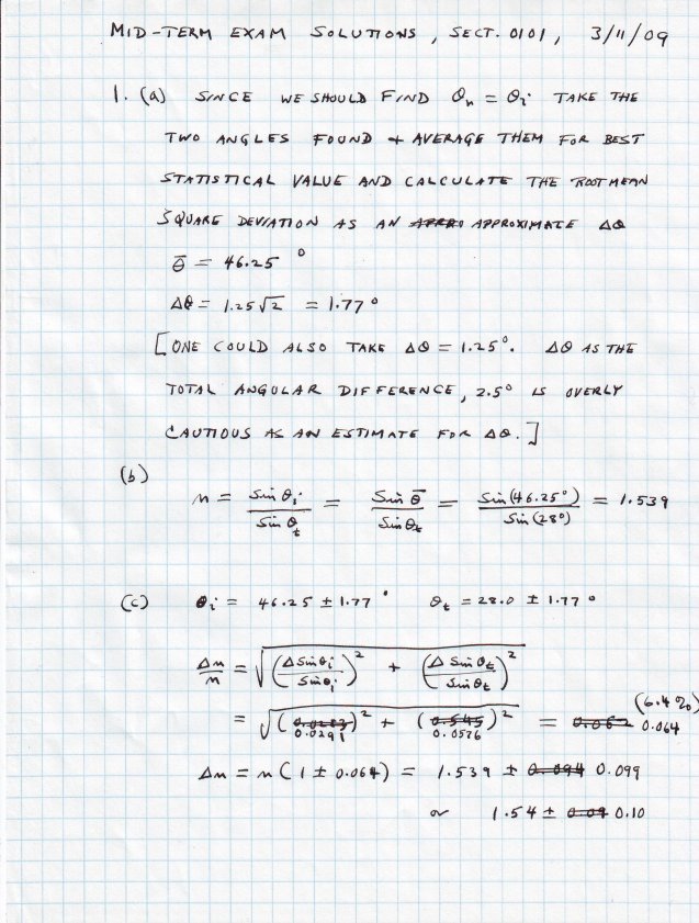 Mid-Term Exam Solutions, Section 0101, March 2009.