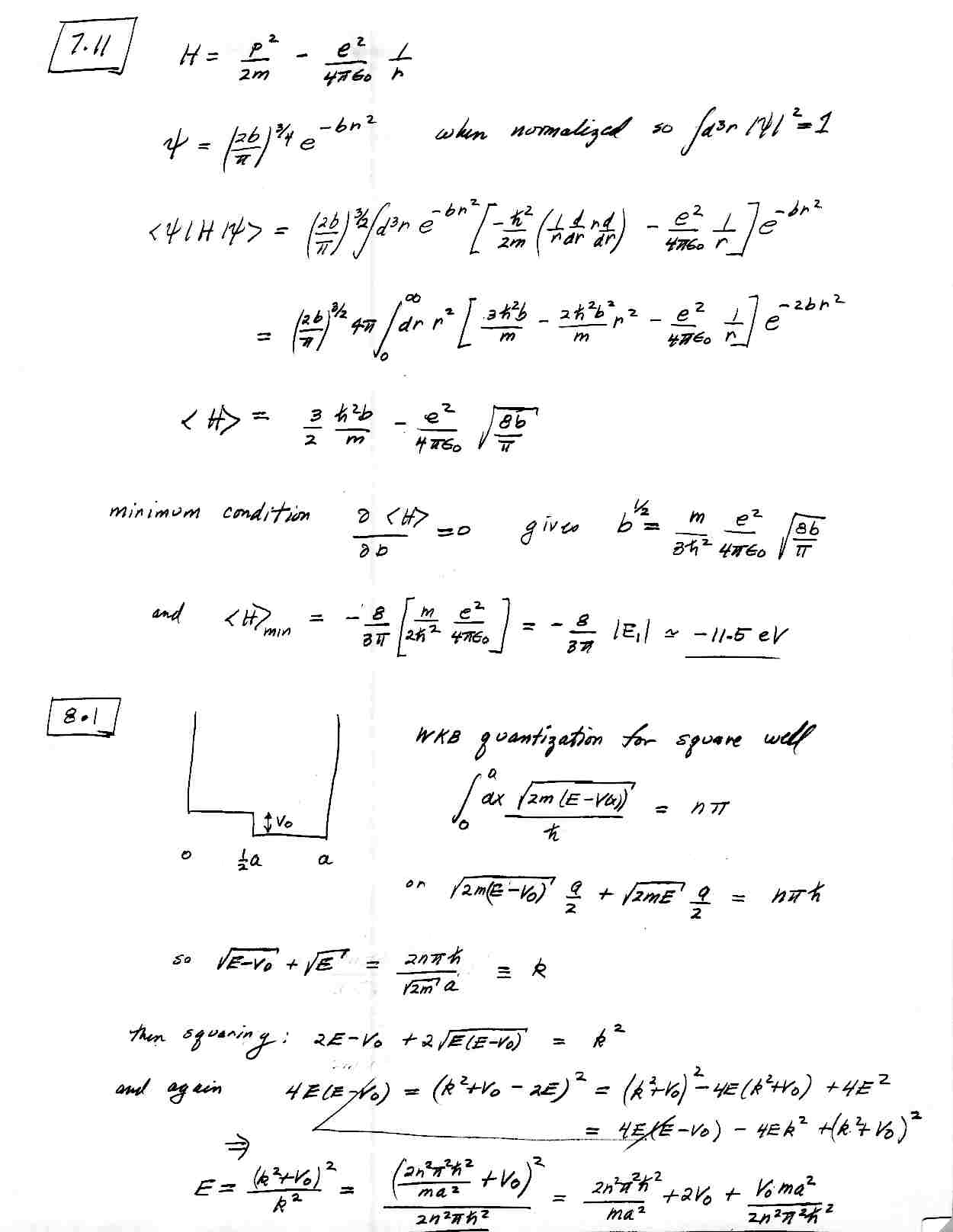 Homework Problems 7.1, 7.11, 8.1, 8.3 and 8.7