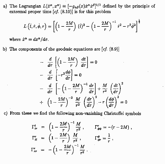 a) First derivatives: the number of components of a symmetric 4×4 matrix is 10. There are therefore 10×4 = 40 first derivatives of the metric and 4×10 = 40 second derivtives ¶2xa/¶x¢b¶x¢g since these are symmetric in b and g.