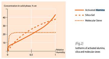 Activated alumina was chosen over silica gel, activated charcoal, and zeolites/molecular sieves. At low relative humidity, the case for recovered helium, zeolites are the most efficacious for adsorbing water. However, the extremely high bake temperature (>300C) makes regeneration difficult. Activated alumina is better than silica gel at low relative humidity and regenerate at relatively low temperatures, >150C. Also, the water capacity of activated alumina is high.