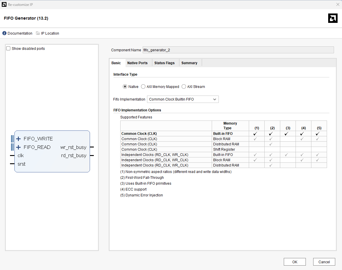 tool, and find "FIFO Generator". There will be 4 tabs: Basic, AXI4 Stream Ports, Config,