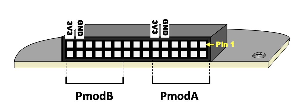 The pins are organized so that you can put a standard 12-pin PMOD connector into
