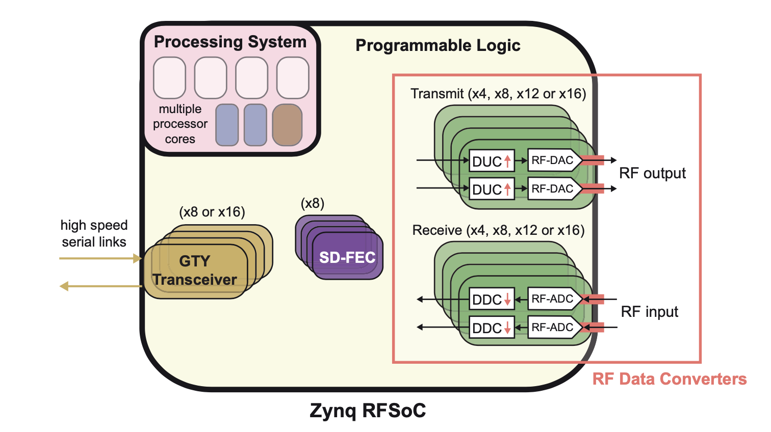 chip has electronics for 8 DACs and 8 ADCs. However, the RealDigital RFSoC board only allows