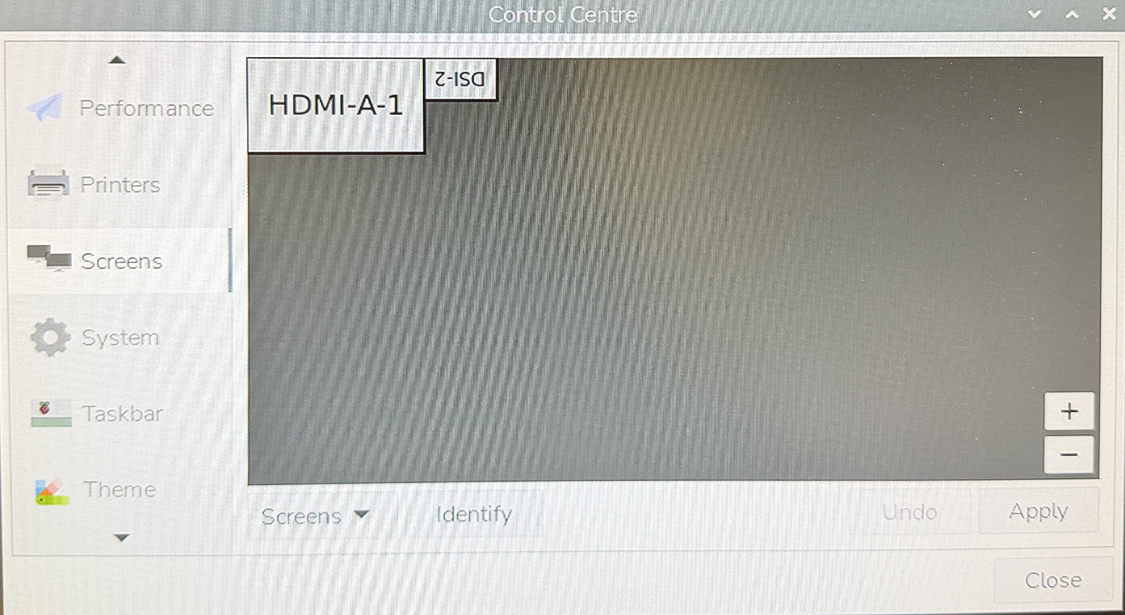 DSI-2 is the 7" touch screen mounted in the rack. HDMI-A-1 is the HDMI output on