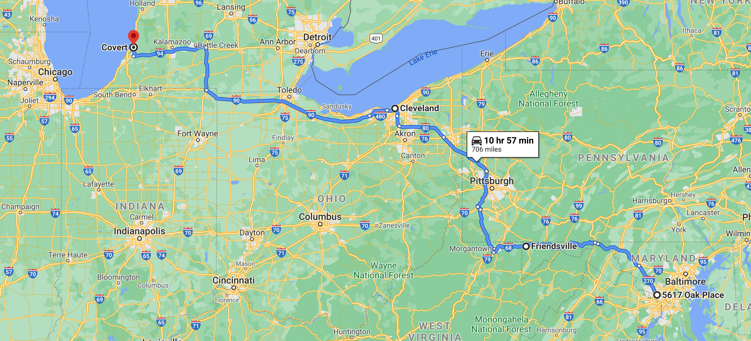 I spent the rest of the day driving to visit friends who have a house on Lake Michigan near the town of Covert, where I stayed the night before continuing to Kaneville to pick up a passsenger.