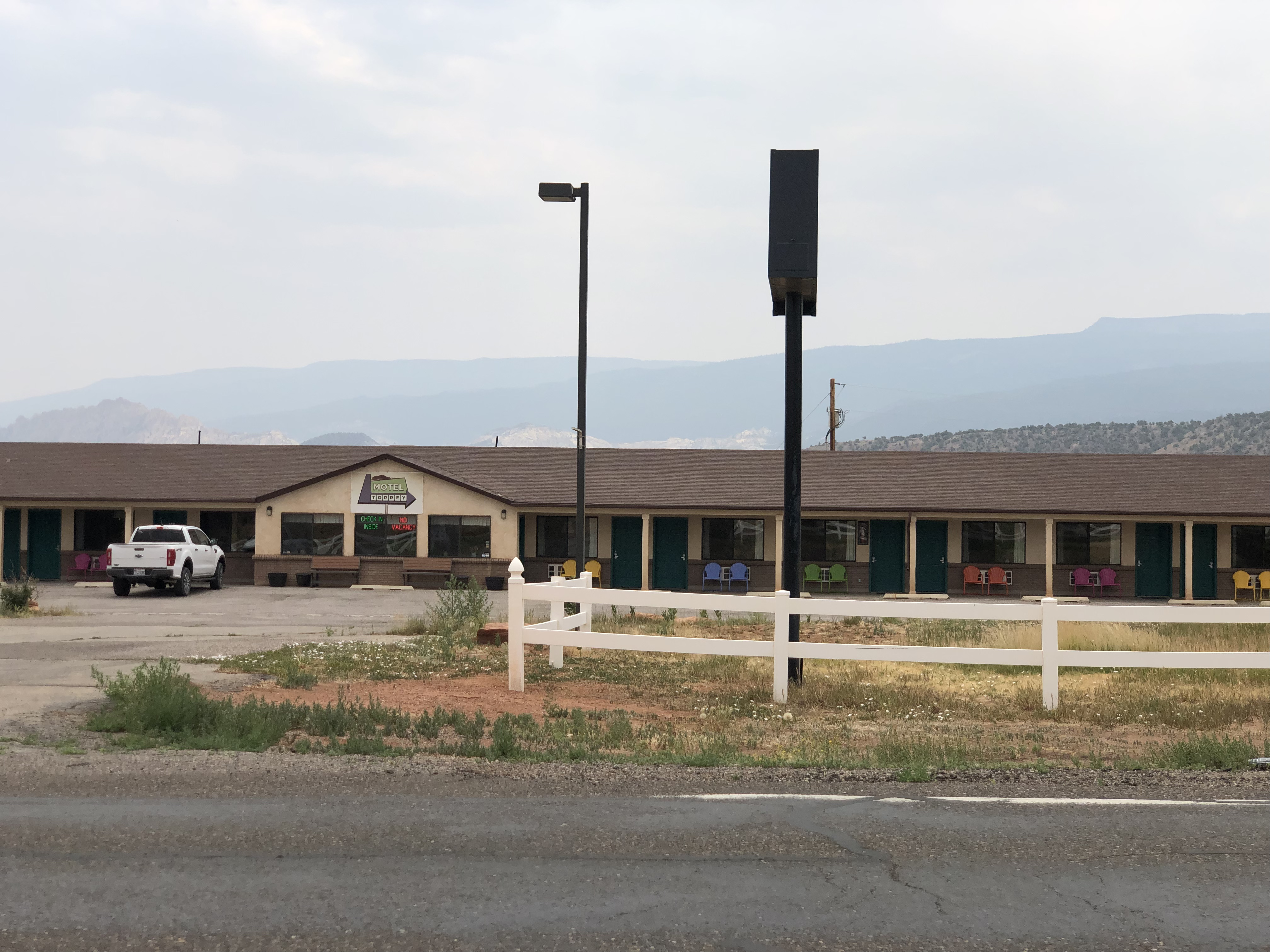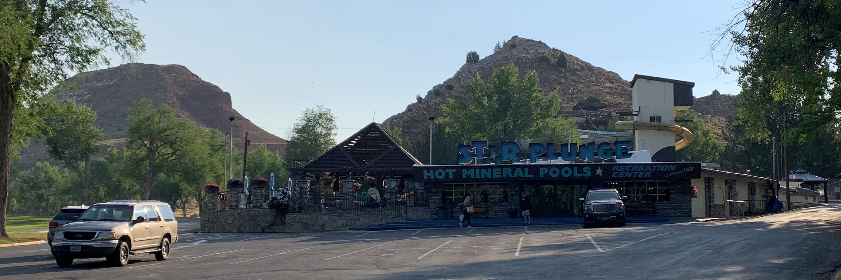 Eventually we get to Thermopolis ("hot city"), and check in. There's a public hot springs, but also a private