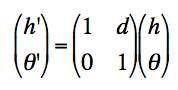 Propagation of a ray by a distance d (in the small angle approximation): the angle stays the same, the height changes.