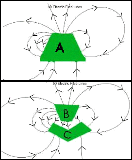 b. The charge contained in A is positive. c. The charge contained in A is negative. d. The total charge contained in A is zero. e. None of the above can be true. B) From the field lines in the two pictures, which of the following statements is most likely to be true? b. The charge contained in B is positive. c. The charge contained in B is negative. d. The total charge contained in B is zero. e. None of the above. C) From the field lines in the two pictures, which of the following statements is most likely to be true? b. The charge contained in C is positive and smaller in magnitude than the charge in B. c. The charge contained in C is negative and greater in magnitude than the charge in B. d. The total charge contained in C is negative and smaller in magnitude than the charge in B. e. None of the above. |