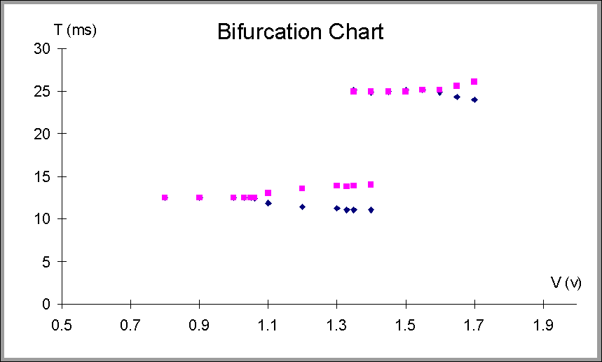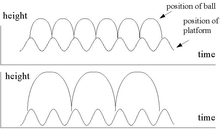 The experiment of a ball bouncing on an oscillating platform is a very appropriate one.