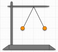B. In lab, suppose that we take two small aluminum spheres of 1 gram each and hand them from a common support point by 23 cm long non-conducting threads. While they are touching, we use an electrophorus to put some negative charge on the two spheres. Suppose that the two spheres share the charge equally. When the electrophorus is removed, the spheres repel and settle down to hang as shown in the figure at the right.