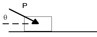 is θ = 0.35 rad. The force P is applied to the block at the instant