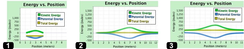 A. In the figures below are shown graphs of the KE, gravitational PE, and total energy as a function of position. In situation 1, the total energy is negative; in situation 2, the total energy is 0; and in situation 3, the total energy is positive. Match which situation goes with which graph and put the letter of the situation to the left of the corresponding graph