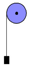 | In testing a design for a yo-yo, an engineer begins by constructing a simple prototype -- a string wound about the rim of a wooden disk. She puts an axle riding on nearly frictionless ball bearings through the axis of the wooden disk and fixes the ends of the axle. In order to measure the moment of inertia of the disk, she attaches a weight of mass m to the string and measures how long it takes to fall a given distance.
