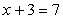 Once I have the idea of addition, I can start to build equations which are equivalent to questions. What number do I have to add to 3 in order to get 7? This can be expressed as