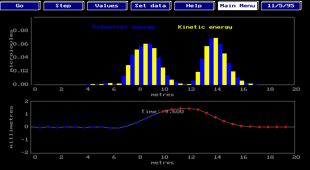 Fig 2: The display of the pulse with local kinetic and potential energies shown.