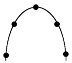 | A boy and a girl are tossing an apple back and forth between them. The sketch at the right shows the path the apple followed when watched by an observer looking on from the side. The apple is moving from the left to the right. Five points are marked on the path. Ignore air resistance.